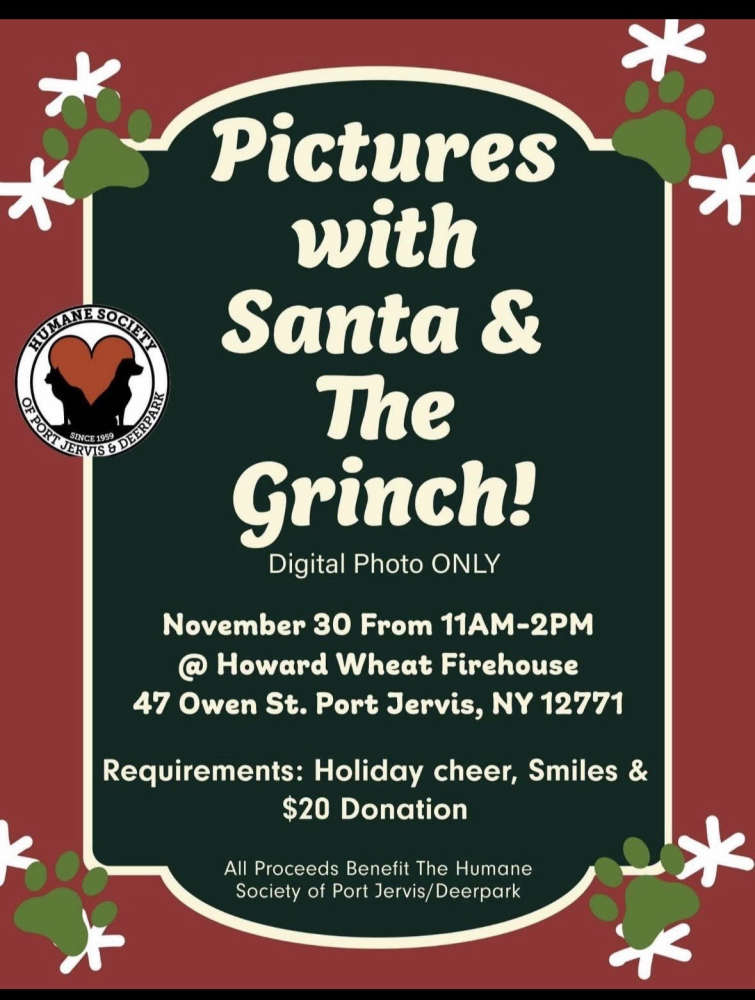 Join Santa Claus, The Grinch and the Humane Society of Port Jervis / Deerpark for a fabulous photoshoot to benefit the Humane Society.